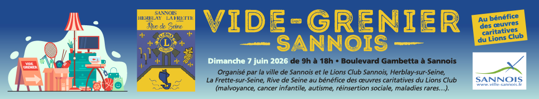 Le Vide-Grenier aura lieu le dimanche 7 juin 2026, boulevard Gambetta (du n°5 au 101), et rue des Conches / Bas des Conches à Sannois.